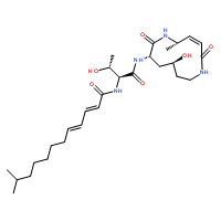 Product Name:2,4-Dodecadienamide,N-[(1S,2R)-2-hydroxy-1-[[[(3E,5S,8S,10S)-10-hydroxy-5-methyl-2,7-dioxo-1,6-diazacyclododec-3-en-8-yl]amino]carbonyl]propyl]-11-methyl-,(2E,4E)- (9CI)
